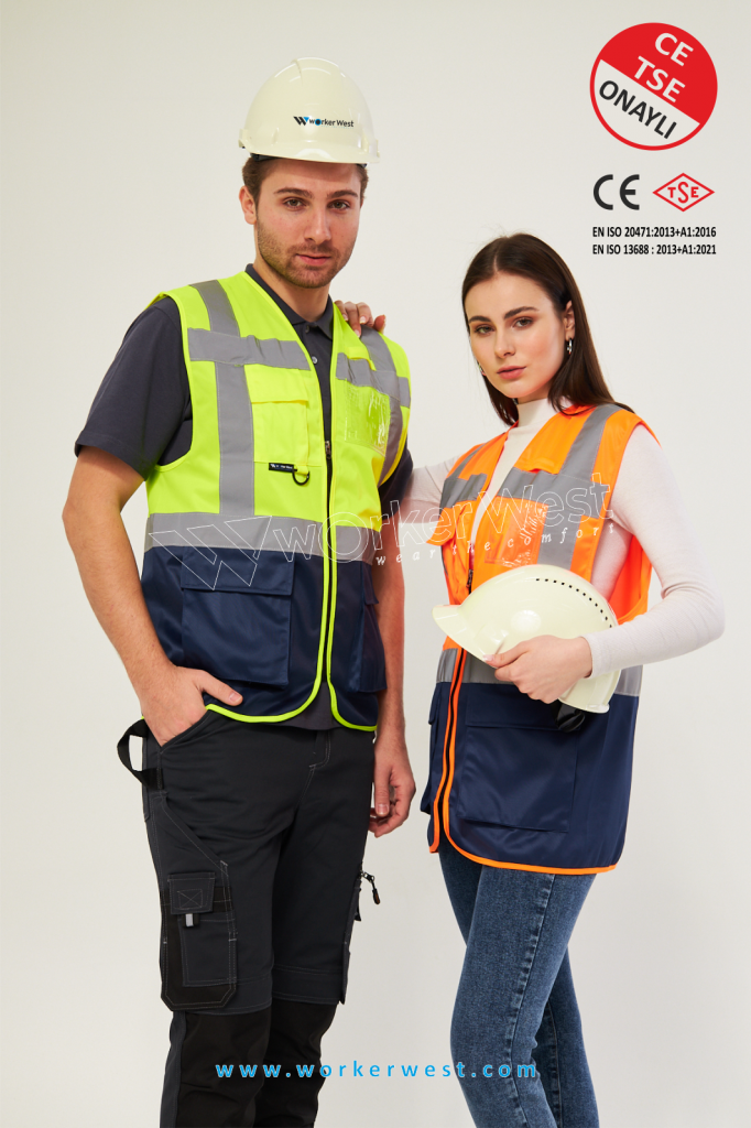 Uyarı Yeleği (WW0632) yüksek görünürlük göz önünde bulundurularak tasarlanmıştır ve bu da onu çeşitli endüstrilerdeki işçiler için ideal bir güvenlik yeleği haline getirir. Yeleğin turuncu lacivert rengi çalışanların düşük ışık koşullarında kolayca görülebilmesini sağlarken, yansıtıcı özellikleri de görünürlüğü daha yüksek seviyelere çıkarıyor. Yelek aynı zamanda güvenlik geçiş kartları ve kartlar için açık kimlik cebi gibi pratik cepler ve aksesuarlarla da donatılmıştır. Bu yelek, yeleğin hafifliğini yelek ceplerinin pratikliğiyle birleştirerek, ceketin çok sıcak olacağı durumlar için ideal bir seçim olmasını sağlayan tasarımı açısından devrim niteliğindedir.