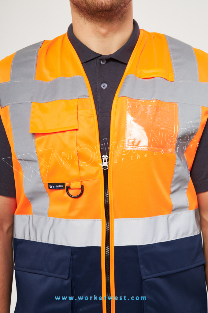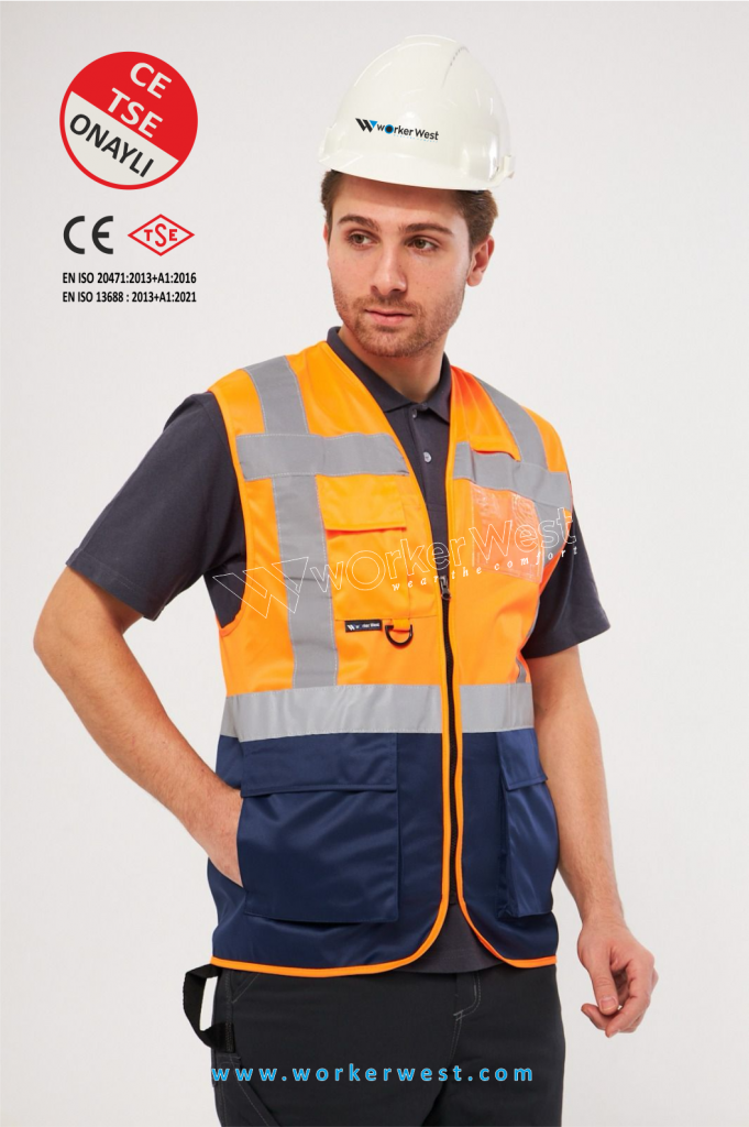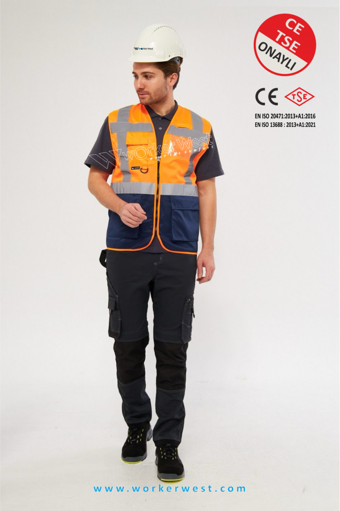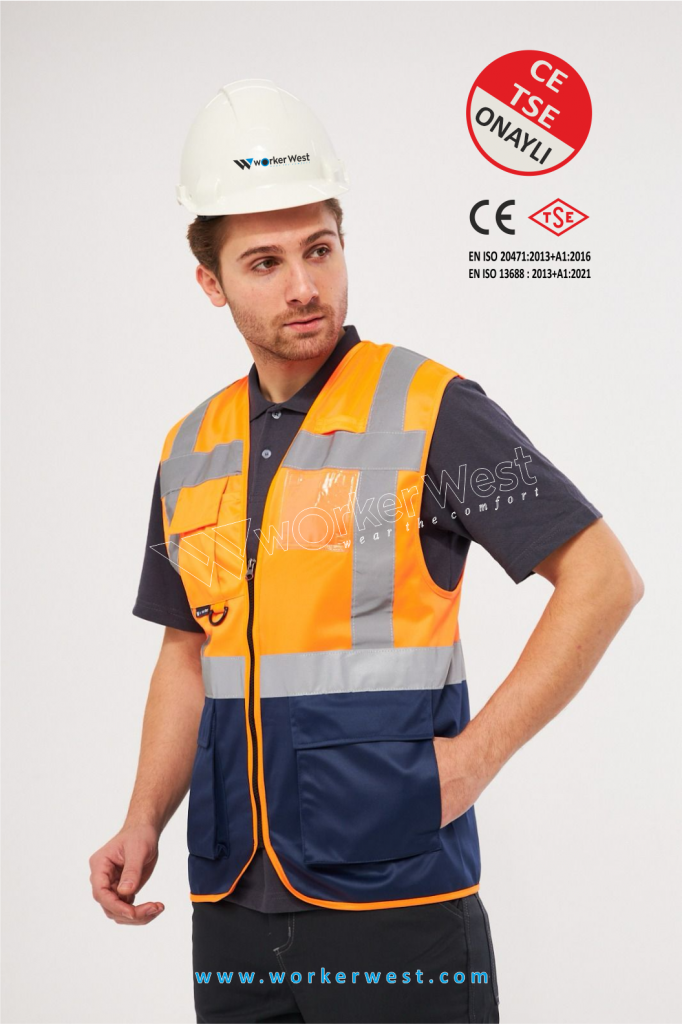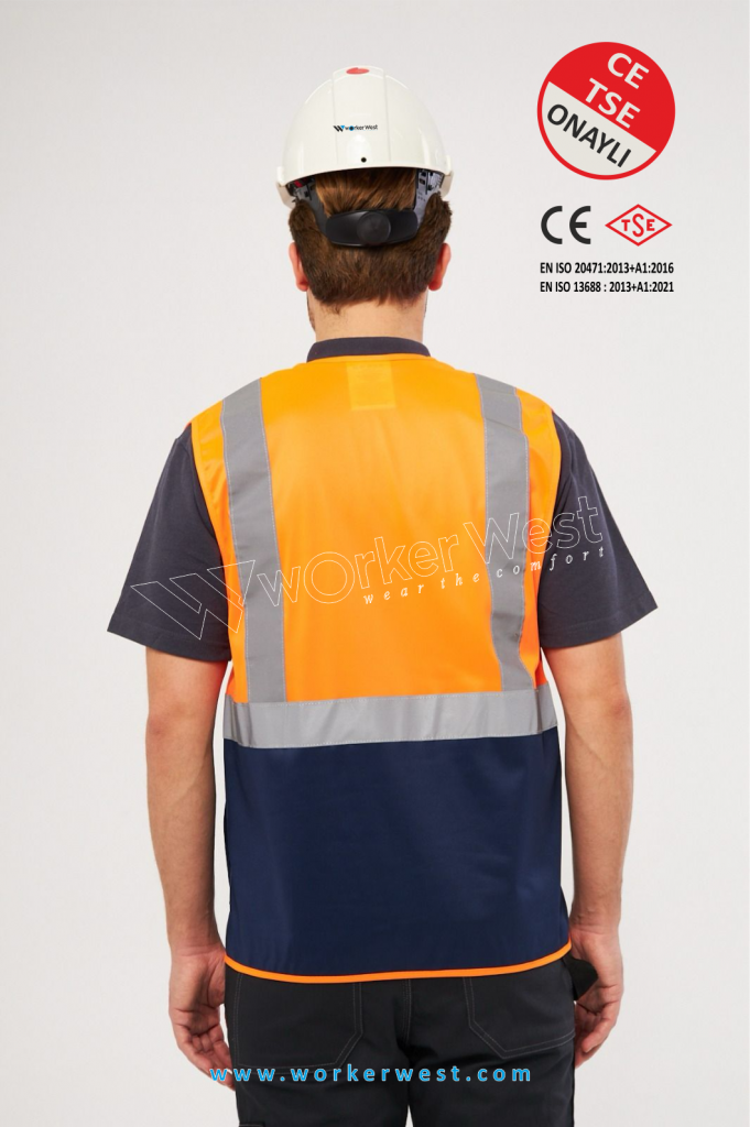 WorkerWest (WW-0632) Yönetici Yeleği Turuncu Lacivert